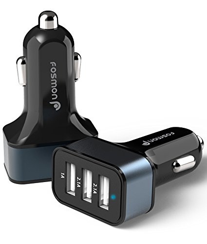 3 Port Car Charger, Fosmon 5.2A / 26W [Overcharge | Protection] Triple USB Port Car Charger - Black with Slate Frame (Electronics)