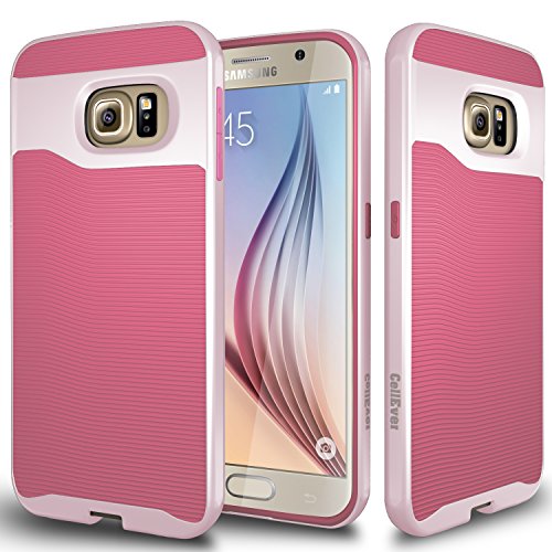 Galaxy S6 Case , CellEver Anti-Slip Case [Drop Protection] Textured Slim Fit Grip [Scratch Resistant] TPU Case for Samsung Galaxy S6 - Pink / White (Wireless Phone Accessory)